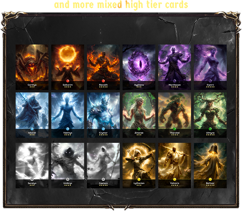 Balanced across elements and built on real synergies, this deck forms a solid core (1★ / 2★) that naturally scales into higher tiers with 3★–5★ upgrades.