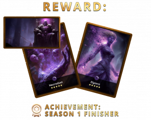 Every season delivers 30 tiers, each unlocked with 1,000 XP. Progress comes naturally through daily, weekly, and unlockable quests. You play the game — the system keeps up. Effort Quests drop you straight into the heart of the Dark Mythos: play matches, enter tournaments, wield the Arcanum, buy materials, and craft powerful cards. Earn rewards that matter. Every reward is Web2, designed to boost both power and prestige: deck-enhancing cards, avatars, titles, and backgrounds, plus exclusive seasonal cosmetics.